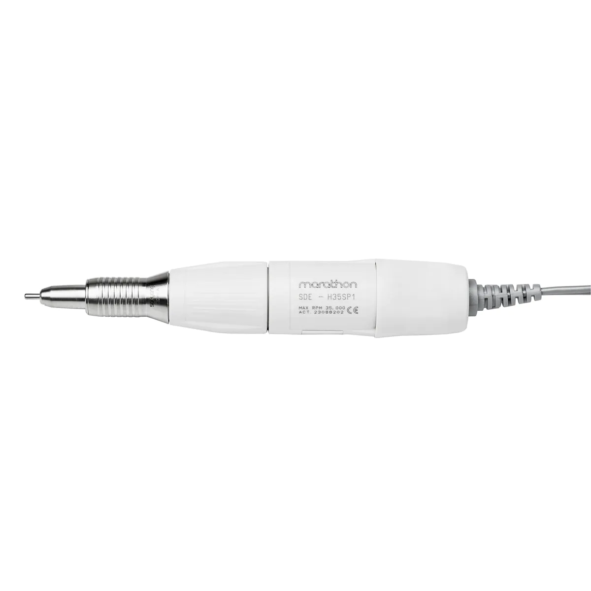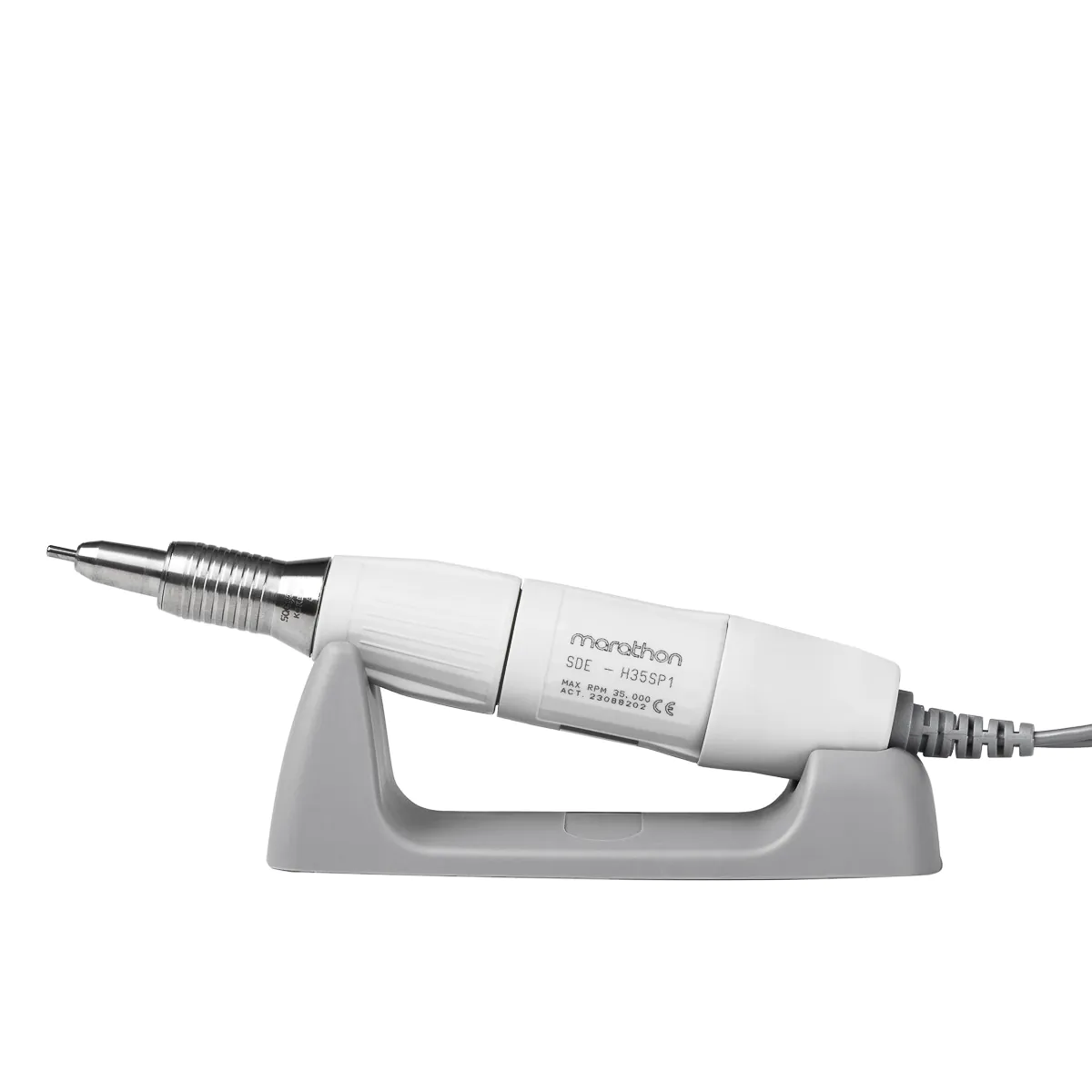 Der Präzisionskopf des H35SP1 liegt perfekt in der Hand, was einen hohen Bedienkomfort garantiert. Er erreicht eine maximale Drehzahl von 35.000 Umdrehungen pro Minute, was sich auf die Arbeitseffizienz auswirkt. Der Kopf ist mit einem einfach zu bedienenden Twist-Lock-System ausgestattet, das einen schnellen und reibungslosen Messerwechsel ermöglicht. Die Klinge ist richtig ausbalanciert und ergonomisch profiliert, außerdem wurden die Vibrationen des Kopfes reduziert, so dass auch viele Stunden Arbeit mit der Fräse die Hand nicht übermäßig ermüden. Das Kunststoffgehäuse schränkt die Wärmeübertragung ein, so dass die Erwärmung des Gerätes nicht spürbar ist. Das flexible Federkabel bietet hohen Arbeitskomfort und erreicht eine Länge von bis zu 135 cm bei erheblicher Dehnung.